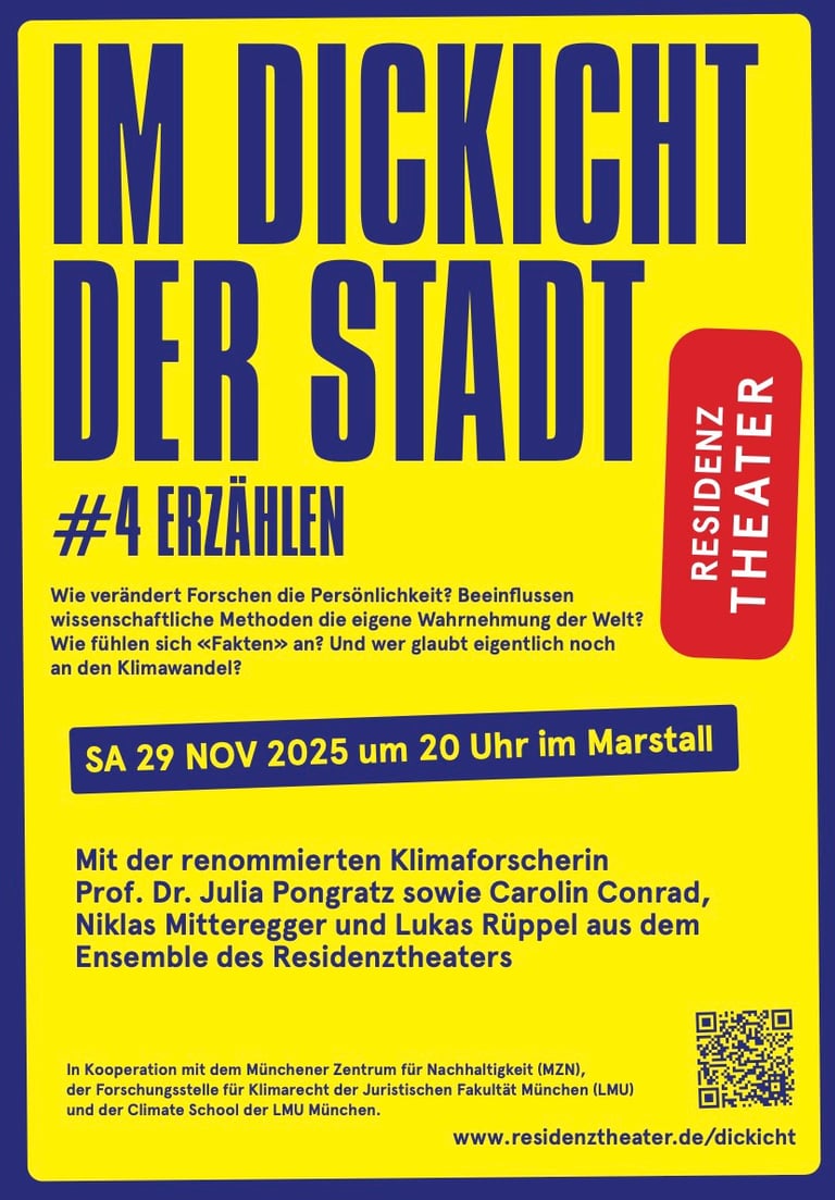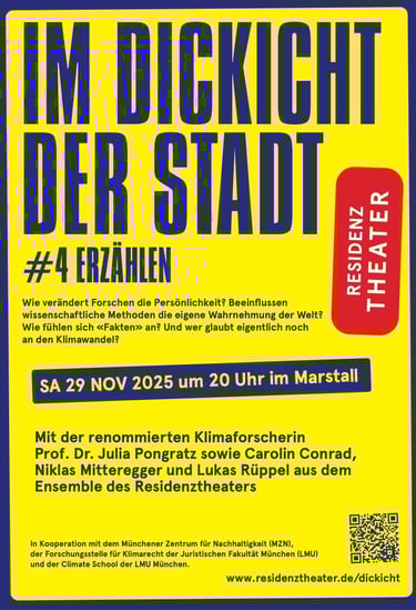 Seit Mai 2025 besteht eine Kooperation von LMU (Ludwig Maximilian Universität, München) und dem Residenztheater München. Gemeinsam mit dem MZN (Münchner Zentrum für Nachhaltigkeit), der Forschungsstelle für Klimarecht und der Munich Climate School entstanden mittlerweile vier Ausgaben der Veranstaltungreihe "Im Dickicht der Stadt" im Theater im Marstall.